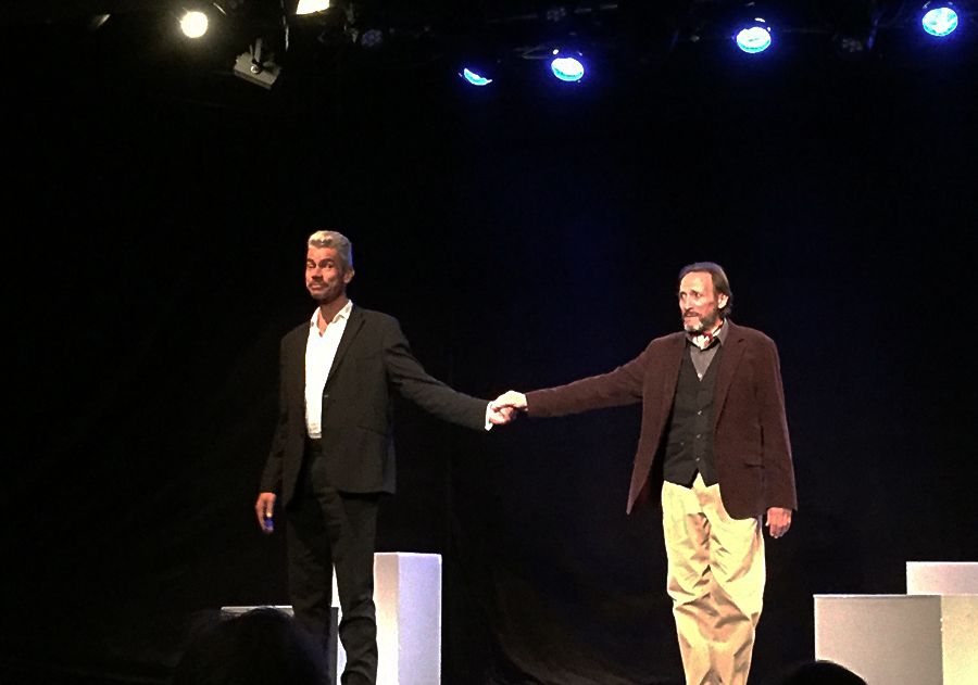 Sans surjouer, sans aucun effet superfétatoire, avec une justesse phénoménale et dans un décor réduit à quatre simples cubes en bois blanc pour s'asseoir, ils incarnent les deux personnages, le médecin et son ami écrivain.