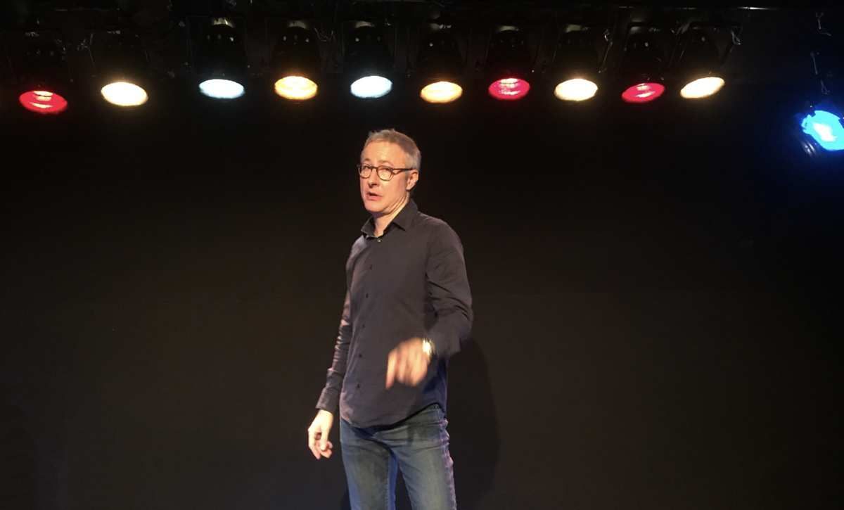 C'est cette qualité le caractérisant que le comédien va vouloir à tout prix nous faire trouver dès le début du spectacle, non sans nous avoir rappelé au préalable son parcours artistique notamment aux Guignols de l'Info et à Caméra Café.